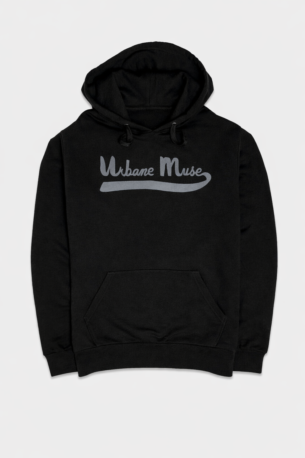 Chris Smith™ calligraphy “URBANE MUSE” inspired logo at center front on a classic hoodie. Hooded pullover sweatshirt with a kangaroo pocket made from washed garment-dyed lightweight French Terry.